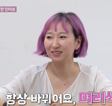 영자는 색깔있는 머리와 개성있는 말투가 돋보였습니다. 직업은 웹툰작가라고 합니다. 어글리후드라는 웹툰의 작가 미애라고하네요.